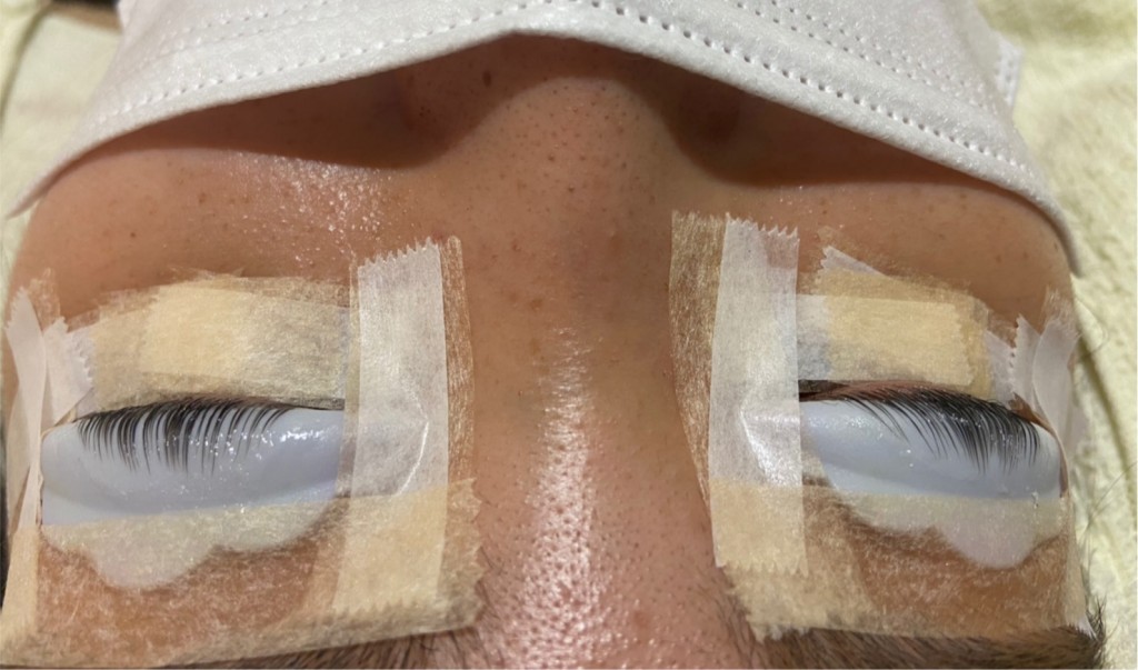 まぶたに選定したロッド(シリコン)を専用のテープとのりで固定する